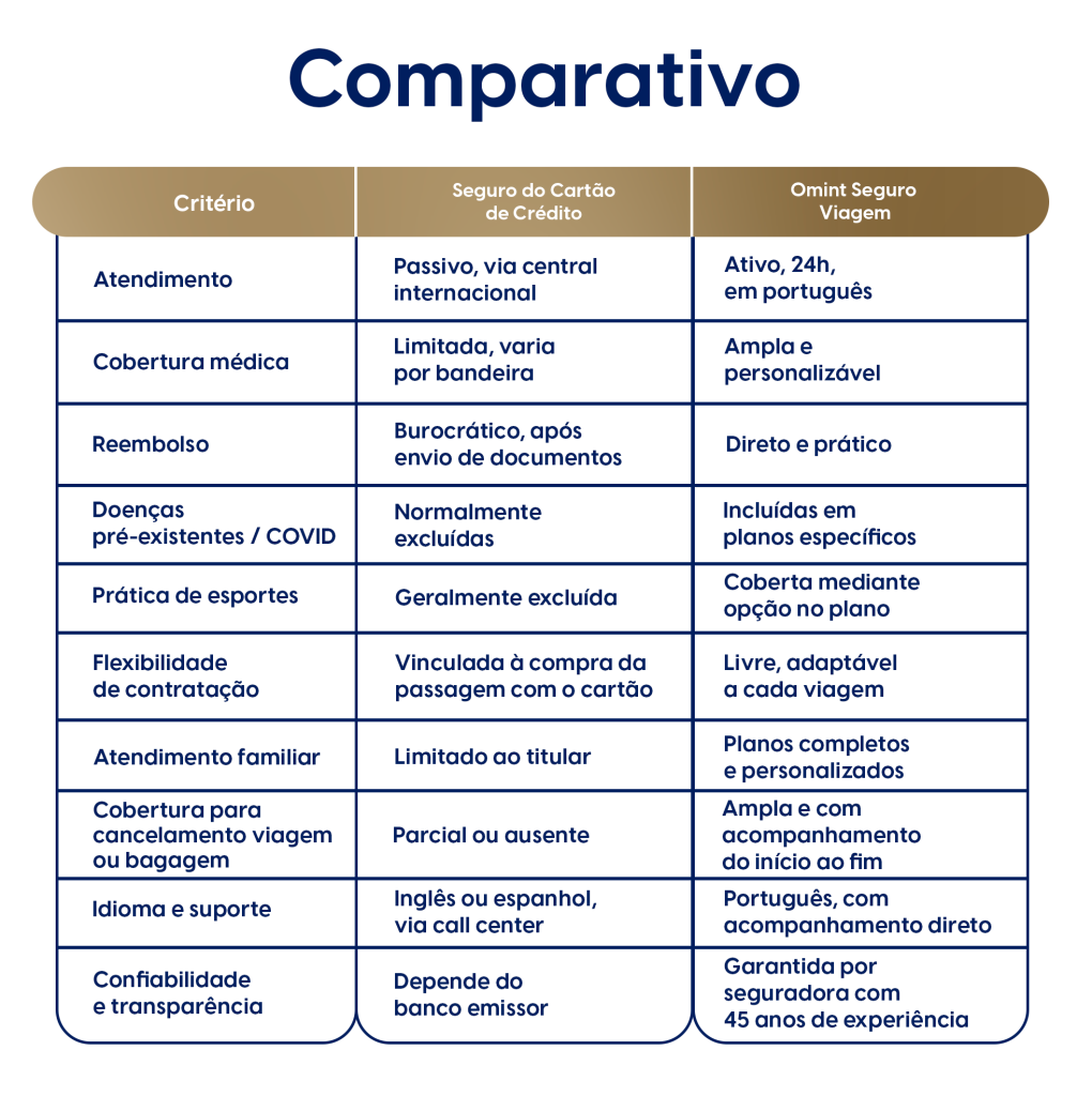 Como o seguro ajuda: com o Omint Seguro Viagem, o viajante conta com suporte 24 horas por dia, 7 dias por semana, em português — pronto para indicar atendimento médico, assistência jurídica e suporte logístico em qualquer parte do mundo.
