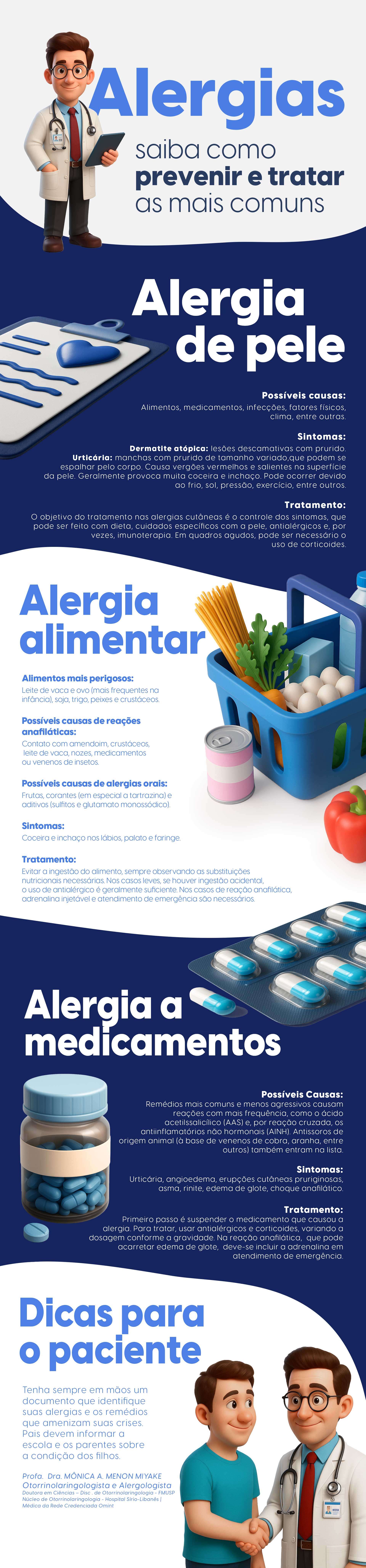 Para facilitar a compreensão, preparamos um infográfico que explica de forma clara os sintomas de alergia, causas e tratamentos para os diferentes tipos de alergias. Confira: