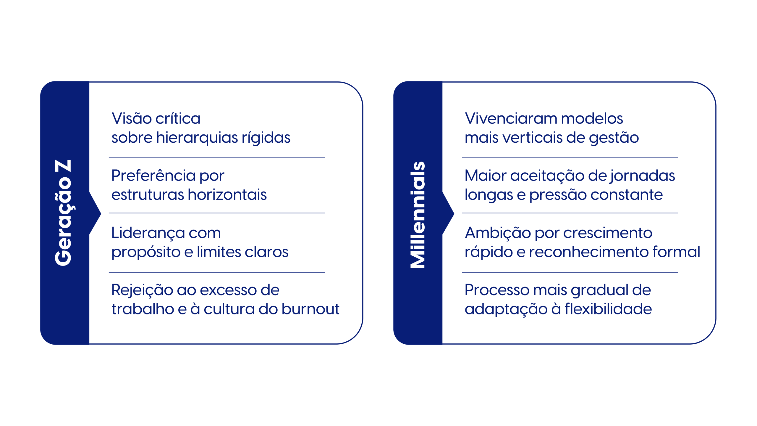 Essas diferenças ajudam a explicar conflitos geracionais dentro das empresas e indicam porque os modelos tradicionais de liderança já não funcionam da mesma forma.